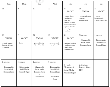 나는 연등 시간을 활용해서 다음과 같이 휴가 계획을 세웠다.