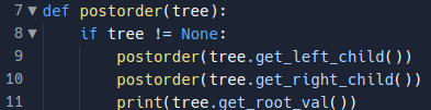 The next is postorder traversal which follows closely with the code we wrote earlier to evaluate a parse tree.