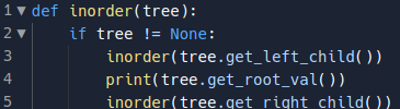 - inorder : We recursively do an inorder traversal on the left subtree, visit the root node, and finally do a recursive inorder traversal of the right subtree.