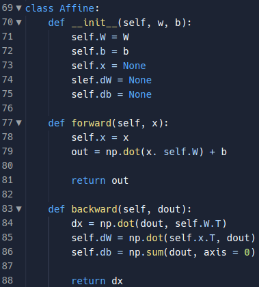 Each function we program corresponds to a layer of the entire. As given in the CNN above the Affine transformation (or layer) is built by np.dot().