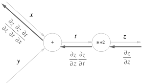 While the addition and multiplication propagations are basic calculations, by combining several nodes we can also build more complex graphs for nodes.