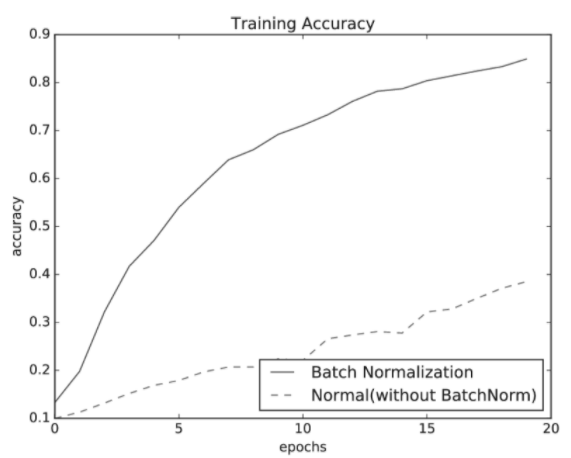 The following process converts a batch with Average = 0, Variation = 1, which is the ultimate goal of batch normalization. Each batch layer shifts and scales the normalized data.