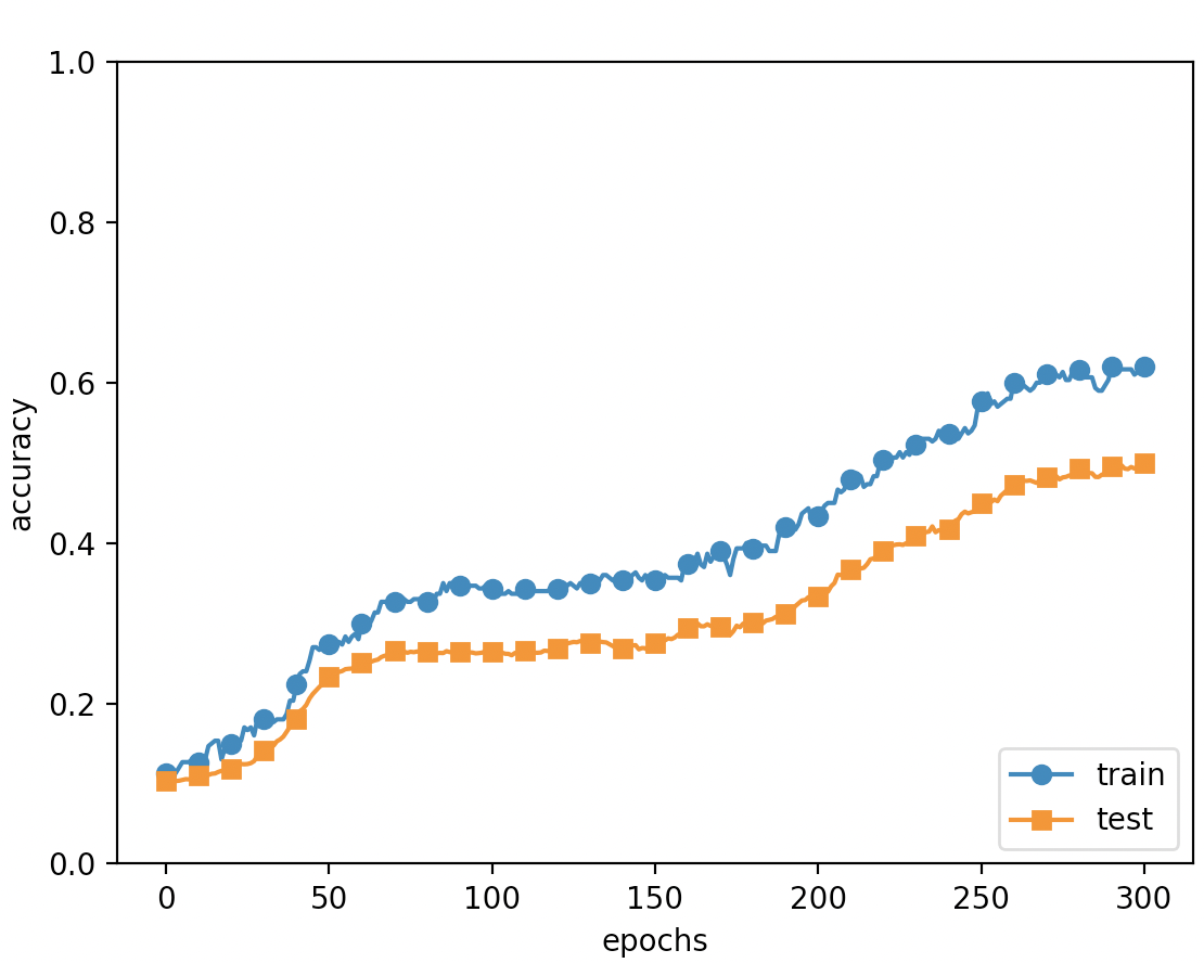 Dropout randomly selects and temporarily deletes nodes within the network. Followed the book to create a trainer which automates the training process as a separate object. The outcome for dropout is as following.